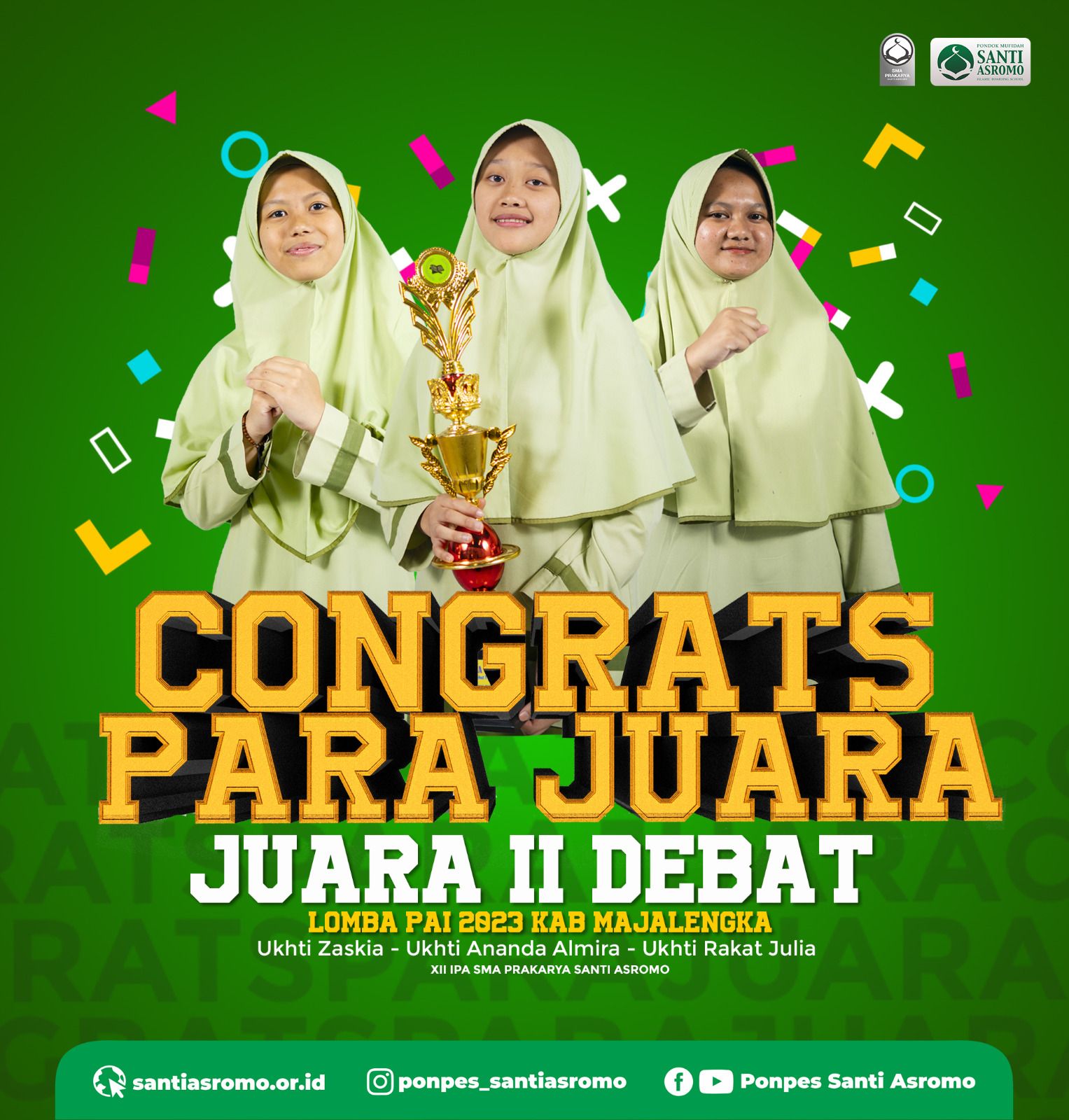 Selamat buat para Juara nih,Ukhti Zaski, Ukhti Almira sama Ukhti Rakat sebagai Juara II Debat Lombai PAI 2023Kabupaten M...